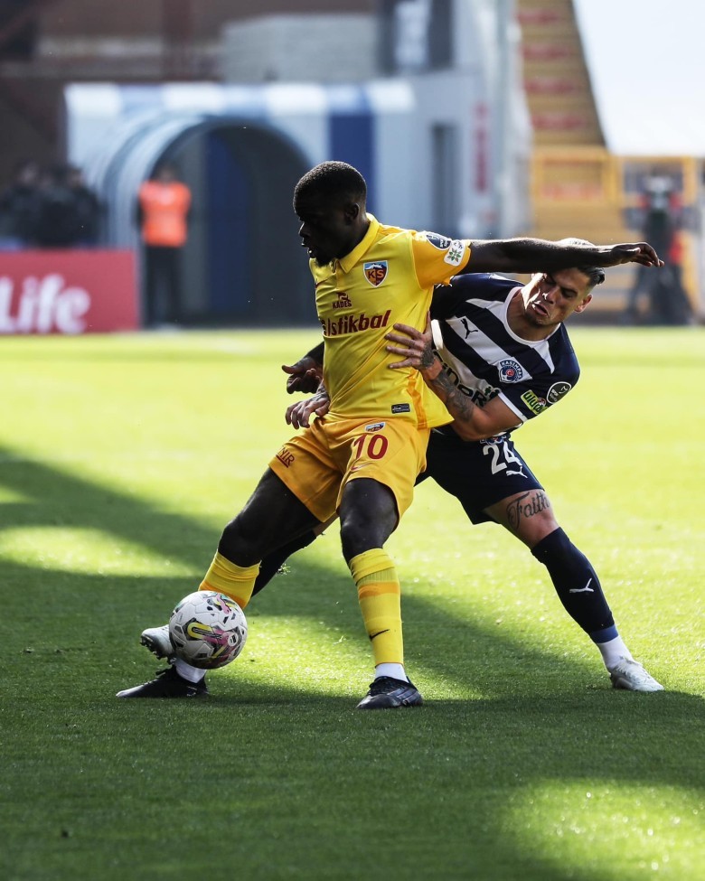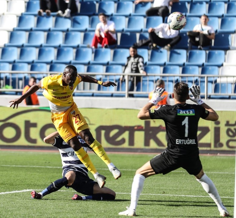 36. dakikada Kayserispor atağında sağ taraftan topla beraber ilerleyen Kemen’in ortasında Thiam gelişine vurdu, meşin yuvarlak kalenin sağından az farkla auta gitti.