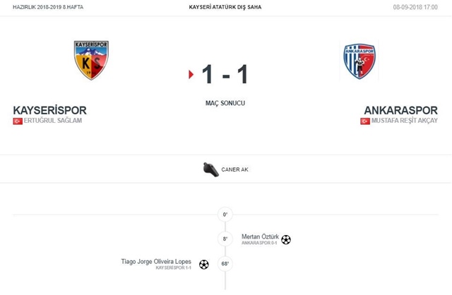 Mücadele 1-1’lik beraberlikle sonuçlanırken, takımımızın tek golünü 68. dakikada Tiago Lopes kaydetti.İlk 11: Muammer Yıldırım, Levent Gülen, Kana Biyik, Oğuzhan Berber, Mert Özyıldırım, Şamil Çinaz, Hasan Hüseyin Acar, Bilal Başaçıkoğlu, Tjaronn Chery, Artem Kravets, Asamoah GyanOsmanlıspor; Ahmet, Ndiaye, Ali, Beykan, Ali Eren, Anıl, Mbu, Sinan, Sharafad, Mertan ve Lembi ilk 11 ile çıkarkenMücadele 8. dakikada Mertcan Caner Öztürk ve 68. dakikada Tiago Lopes'in karşılıklı golleriyle 1-1'lik eşitlikle sonuçlandı.