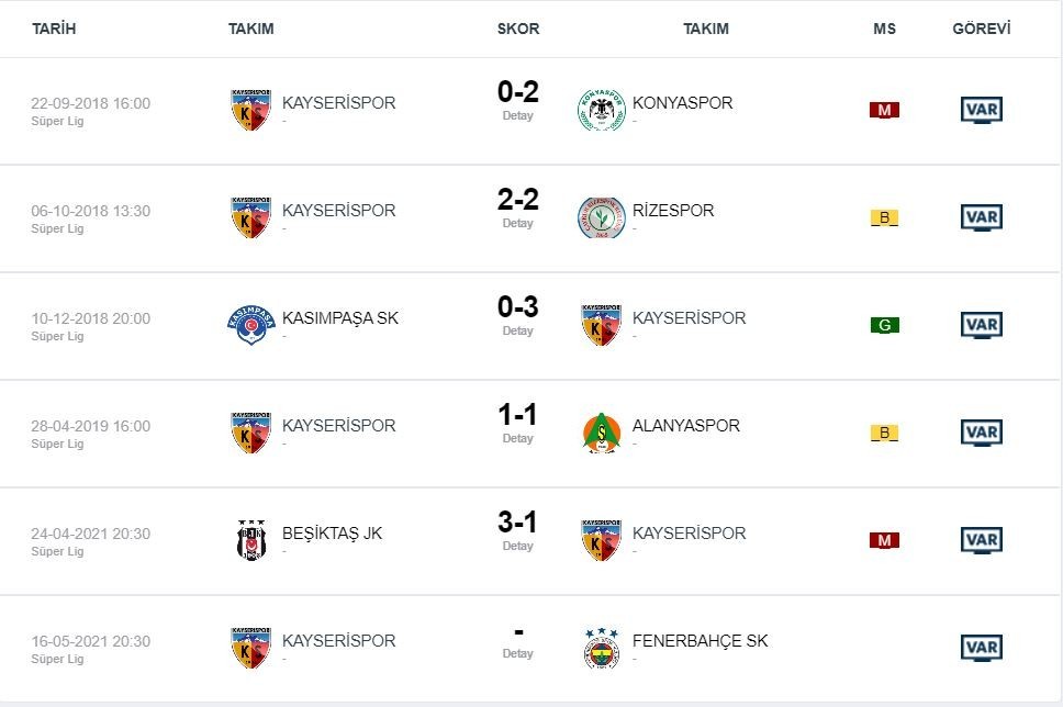 Bugün oynanacak olan Kayserispor-Fenerbahçe maçında normalde 2 VAR hakemi görevlendirilirken bu maça 1 VAR ve 2 Yardımcı AVAR hakemi görevlendirildi.