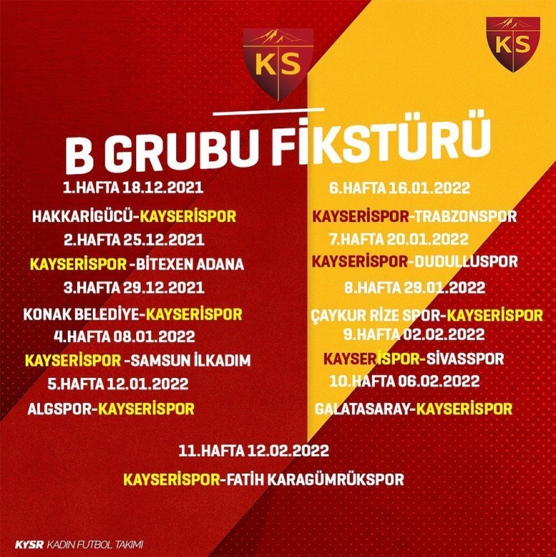 Kayserispor Kadın Futbol Takımının Fikstürü