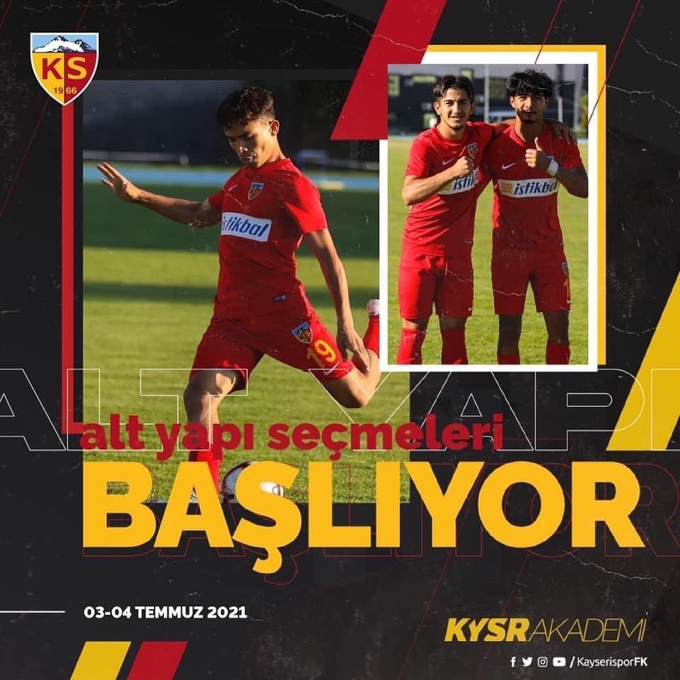 Hes Kablo Kayserispor Kulübü Futbol Altyapı Takımları 2021–2022 Sezonu futbolcu seçmeleri 3-4 Temmuz tarihlerinde Erkilet Mehmet Karabacak Sahalarında yapılacaktır.