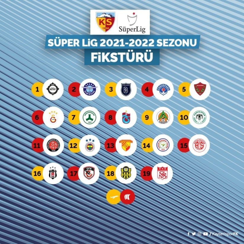 Kayserispor Süperlig'deki ilk maçını deplasmanda ligin yeni takımı Altay ile oynayacak. Kayseri'deki ilk maç ise yine ligin yeni takımı Adana Demirspor olacak.
