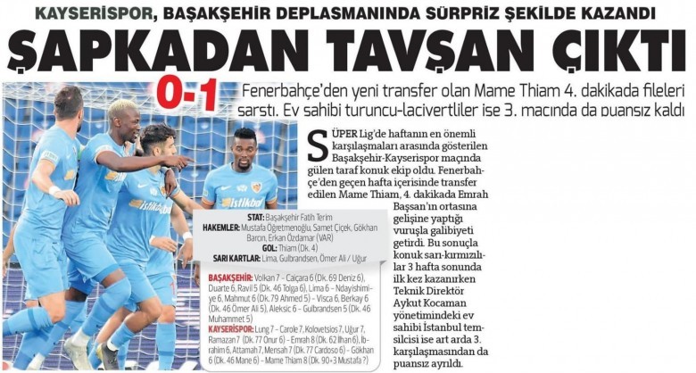 'Şapkadan tavşan çıktı' şeklinde attığı başlığa tepki göstererek sosyal paylaşım sitesindeki hesabı üzerinden; "Spor yazarlığının geldiği duruma bakar mısınız? Şapkadan tavşan çıkmış! Araştırmadan, soruşturmadan, kadro değerine bakmadan, büyük ihtimalle maçı bile izlemeden belli ki geçmişte kalarak atılan, ezbere gazeteciliğin güzel bir örneği. Kayserispor büyük camiadır" cümleleri ile cevap verdi.