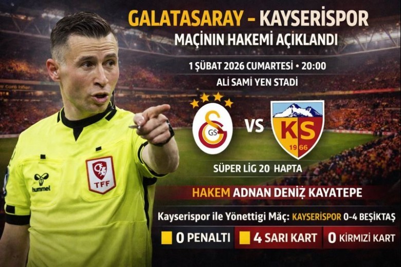01 Şubat 2026 Cumartesi günü saat 20.00’de, Ali Sami Yen Spor Kompleksi’nde oynanacak mücadelede düdüğü Adnan Deniz Kayatepe çalacak.