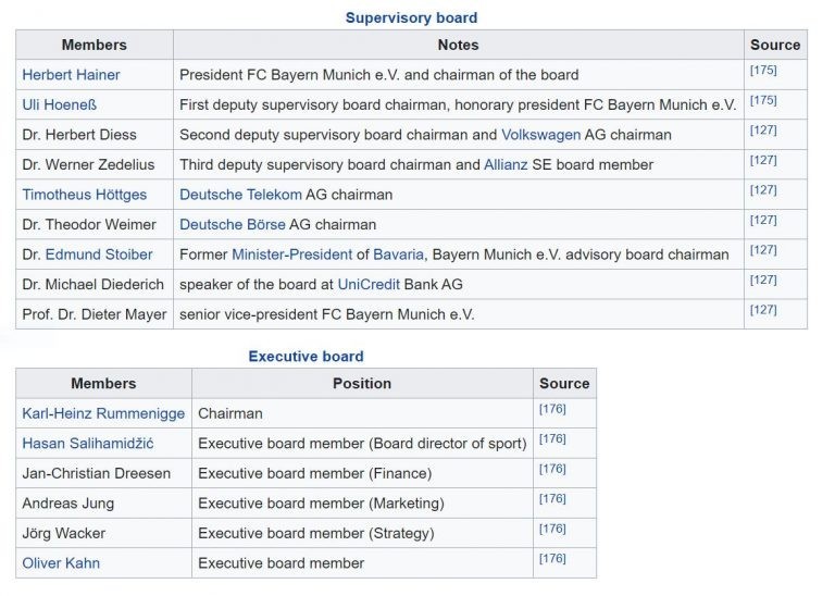 Alttaki görselde Bayern Münih’in iki farklı organını görüyorsunuz. Üstteki denetleme kurulu genelde iş insanlarından oluşuyor. Bizim kulüplerimizin yönetim kuruluyla eşdeğer düşünebilirsiniz. Uli Hoeness’in dışında bu kişilerin isimlerinin bilinmesine gerek yok. Alttaki ekip ise bu acımasız Alman harikasının beynini oluşturuyor.